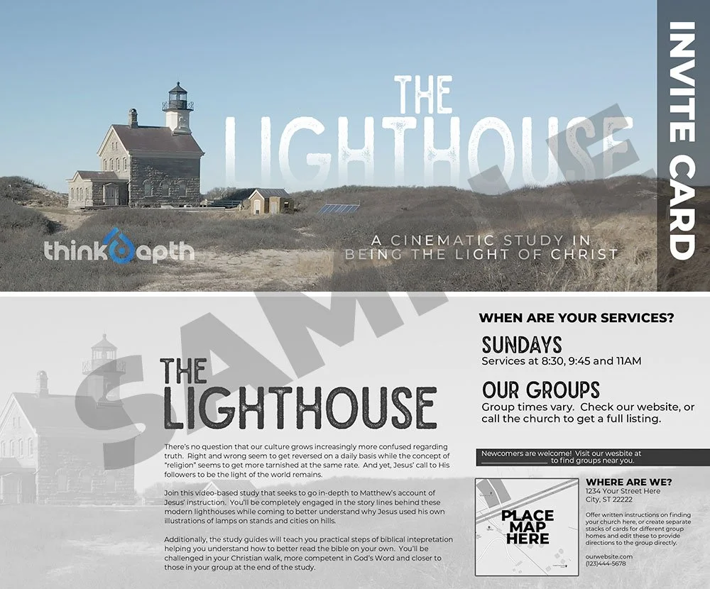 Fully customizable artwork for 4×8 rack cards allowing your members to easily handout as an invitation to new visitors! Entire backside of the card can be customized with your own map, service times, website and contact info. Download the customizable and layered In-Design file.